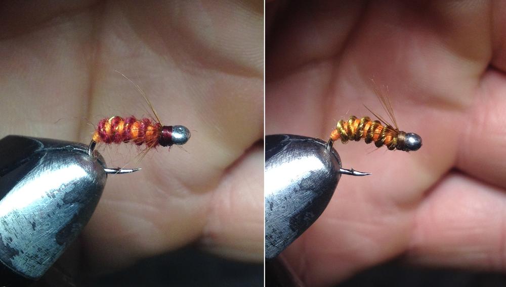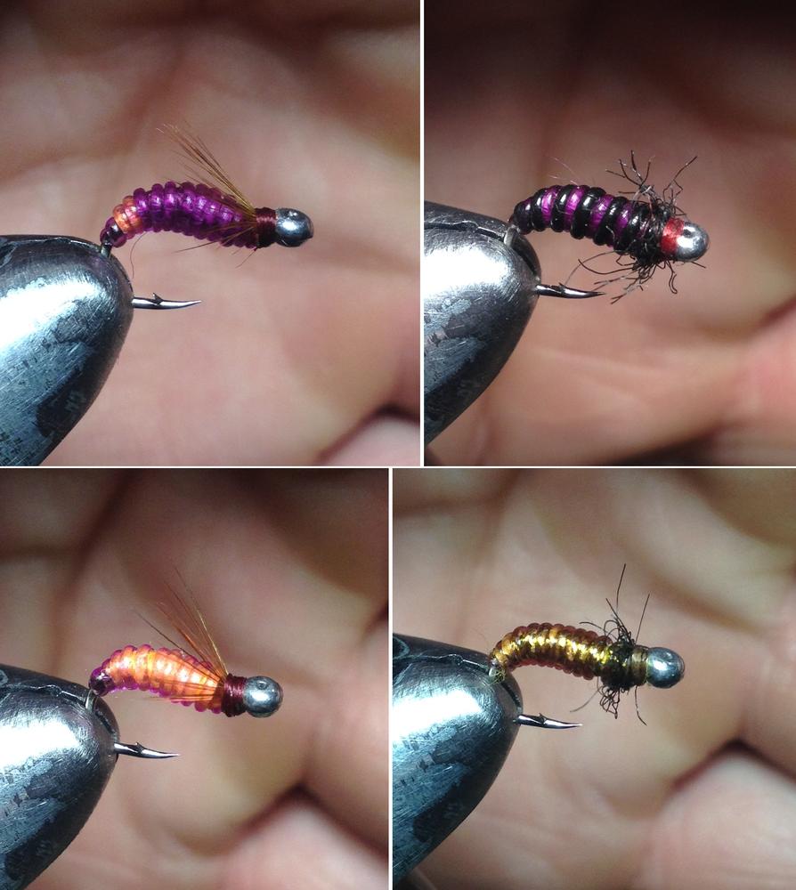 Повязался немного в непогоду. Форма мухи, как показала практика, рабочая. Сочетания цветов экспериментальные.