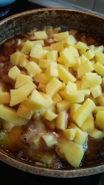 Так как название блюда переводится почти как "тушёная картошка", то картохи надо довольно много.