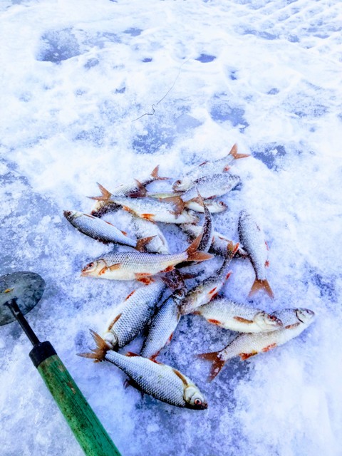 Народу на озере полно, много кто с мотобурами. До обеда идет хаотичное перемещение рыбаков по озеру, каждый ищет рыбу.