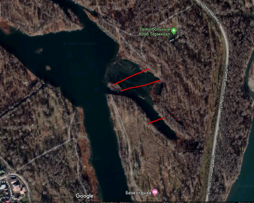 Сегодня ходил в зону отдыха покидаться спиннингом. Елец вовсю гоняется за тополиным пухом. После прогулки остался нехороший осадок. Залив (на фото) перегорожен сетями. На фото красным я нарисовал, как они стоят. Слов у меня нет. Как же нужно голодать, чтобы в городском водоеме поставить около 200 метров сетей! Штрафы за ловлю повысили. По центральному ТВ показывали, как пенсионеру насчитали 10тыс штрафа за две рыбки. Здесь же рядом с сетями стояла иномарка и я уверен, что ничего за эти сети никому не будет.