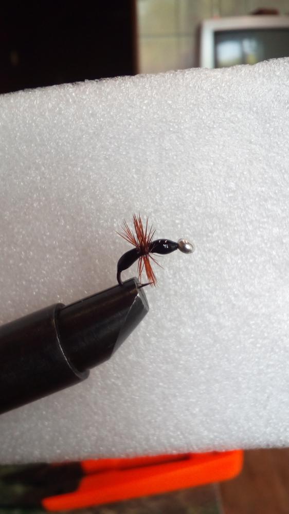 Могу только без фото. Сложности нет, простая муха. Сделал жопку овальную до середины тела, покрыл уф лаком, высушил, по центру тела пару оборотов пера пети, потом вторая часть тела и пропитка также её лаком.