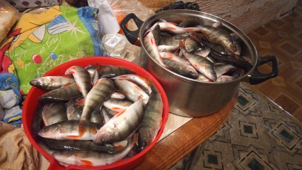 Плохо клевало 2 штуки поймали. заглянул в лунку (глубина 1.5 метра) там стая полосатых смотрит как будто телевизор