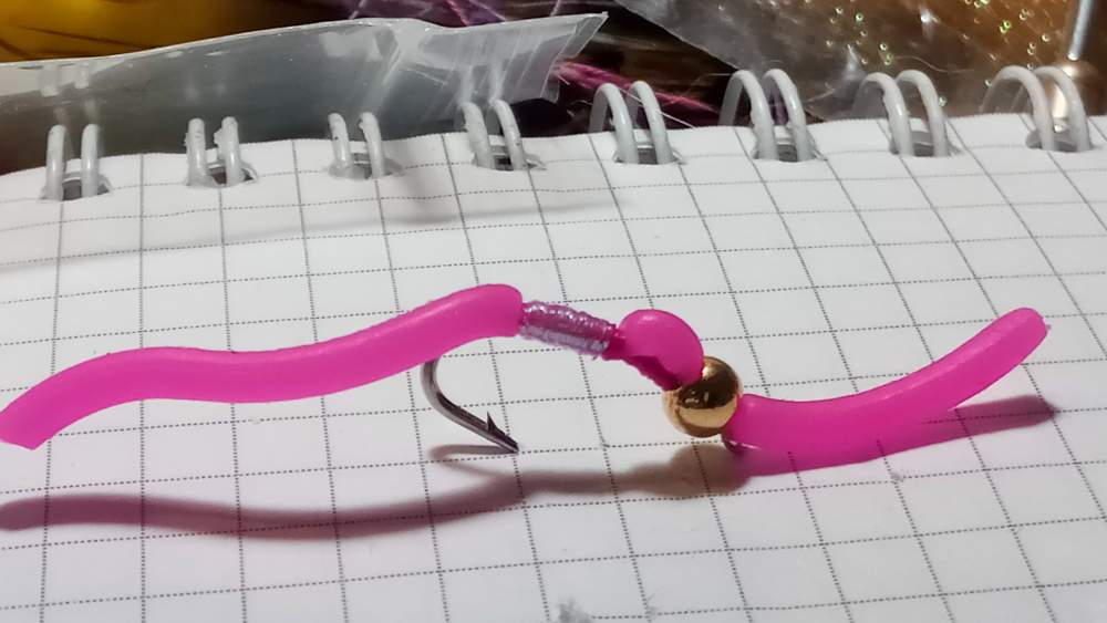 А если серьёзно,норм червь.Можно на хариуса пробовать на подлёдку как верхнюю подвеску.