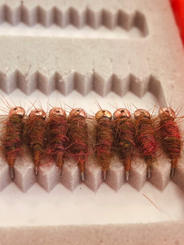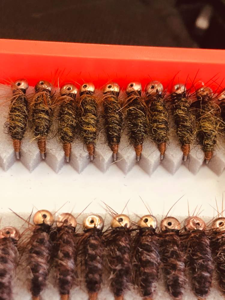 1. Часть мух сделана из материала Semperfli Dirty Bug Yarn