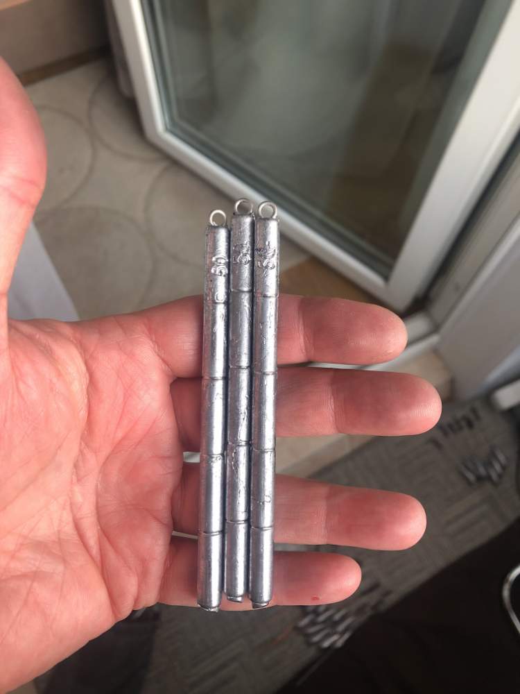 При рыбалке с берега пользую вот такие карандаши весом от 30 до 50гр , предварительно изгибая, меняя их форму.