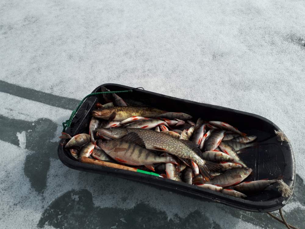 Всем здравия.Посетил Кантегирский залив.Жили с командой на базе,жарили шашлы,варили плов и борщ.Парились в бане.Погода то снег,то солнце припекает,ночь - утро валит снег,день - снег тает.Лёд около 30 см.,мокрый насквозь,ходить страшновато,особенно ближе к берегу В подпорах ручьёв его почти нет.Рыбка держится ближе к ручьям,там она и более активна.Закрыл сезон подлёдки,поставил так сказать жирную точку.