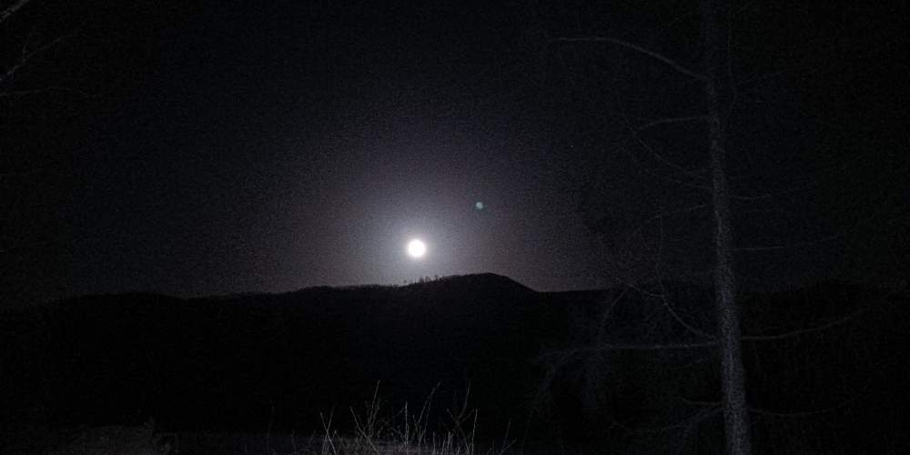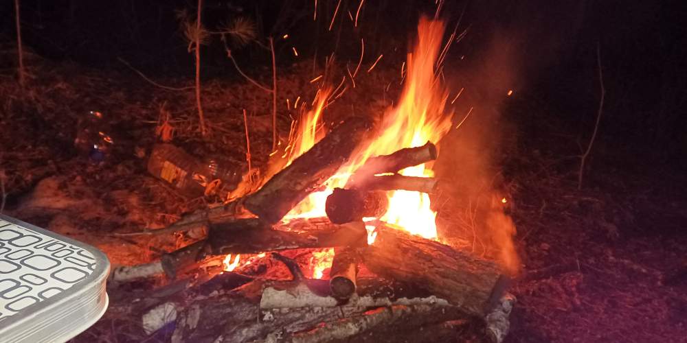 Стартуем выше. Остановились в одном месте, Енисей как футбольное поле....Видим местных на мотоцикле, на той стороне. Кстати по той-левой стороне то же деревня, д.Сизим- так же староверы. Подметили место, двинули выше. И вот мы до ехали, куда и планировали. Вечереет. Идём на реку. Место знатное. Есть открытая вода, есть ручей с горы под лёд. Бурим, пробуем, результат тот же. На ночь ставим 10 флажков. Вечером, муза, балдеж и все такое. На этом месте к нам пришел пёс, лайка, молодая. С нами и ночевал.