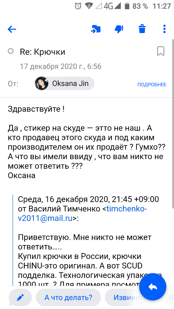 Всех приветствую. В общем ситуация следующая, как и история: решил Я зиму скоротать. Покупаю у Алексея станок по пайке без чешуйчатой мормышке. Огромное ему за это спасибо. Долго не получалось, то ток, то припой в общем, пока 500 шт не спаял, только потом въехал. Начал замарачиватся с поставками и покупкой всем известных в широких кругах рыболовных крючков фирмы "KUMHO". Да и собственно изначальная цель была продавать крюки с напайкой ниже чем у других продаванов, ориентировался на цены в Красноярске, Иркутске, Хабаровске. Пришол к цене на scud-3,2-3,5 р.шт. На Chinu 2,8-3 р.шт. В общем заказываю Scud и Chinu. По приходу понял, что чину качественный, а вот скуд не качественный. В общем угарел. Написал продавану, тот просто не отвечает. Не долго Я думал. Пишу письмо в Корею, так мол и так, прикладываю фото упаковок. Мне ответили; что скуд не их крючок- вернее упаковка, а вот чину оригинал. Начал Я пытать Корейцев, о продаже крюков. Мелкими партиями не занимаемся. Спрашиваю, сколько мин.заказ? От 10,000 тыс. дол. Вот те на....Я опять Корейцам, кто продает Ваши крюки в России? Мне ответ, перечисляет 3 магазина...Я к ним на сайт, крюков KUMHO нет. Я опять Корейцам...В общем дело обстоит так...Кто то при больших деньгах, покупает крюки в Корее, доставляет в Россию, пакует их под своим именем. Разбираюсь дальше...С Кореи ещё один магаз подсказали, что в Кемерово. Я на сайт, KUMHO нет. Зато есть SCORPION. Я за скорпион, где на русском написано. Пишут, упаковано в Кемеровской обл. На этикетке, увидел каталожный номер оригинального скуда. Вот те на. И цена 40 рэ за 10 крюков. А где на английском написано, фирма Siweida-Китай, но под вопросом, возможно и они закупают в Корее, из каталога видно, что ассортимент KUMHO, цена от 2 рэ и выше, это опт. Новосибирский магаз, то же подсказали Я к ним, раб. только оптом, KUMHO нет, есть их товар, под их названием, ассортимент KUMHO, цена от 2 рэ за шт. и выше...Есть ещё гюрза, ассортимент тот же, но цена на порядок выше, есть в таргет, там цена от 2 рэ и выше....Не удивительно, что цены в Красноярске на крюки с напайкой от 400 рэ за 100 шт, где уже и 500 рэ. Я в Корею пишу, в общем, ответ следующего содержания...Наши крючки, под нашим брендом в России не найдете, все что Вы видите в России под брэндом KUMHO, это либо самозванцы, либо Китай.....Вот так...В общем Я запутался. Можно и по 1,8 рэ купить, но там партия 1000 шт. Так как официальная контора Китай, где гарантия, что Китай это Китай, а не Корейский продукт. В общем в поиске, В Корее нет никого....В России просто бардак. Каждый накручивает просто с лихвой...С Китая заказал Алексей крюки, подобно бику или чину, что то между может, качество норм, острые, напаял...Сам то же заказал не которых крюков в Китае, жду, что придет, там видно будет. Желание есть, возможностей нет. В Корее конечно будет дешевле, если оптовая с Новосиба скуда продает 2060 рэ за 1000, это опт. розницы у них в принципе нет, опять же их название на этикетке, где гарантия, что это Корея....Прошлой закупкой, взял крюков у Горохова, для сухарей, вроде тонкий, пишет KUMHO, а он мне не нравится, именно качеством, как то так...Со scud, я в пролете, 2000 шт заказал, хотел белых, продаван сказал, что Черная речка не так давно все выгребла, ну Я и повелся....как то так. Теперь раздам :lol: как то так...